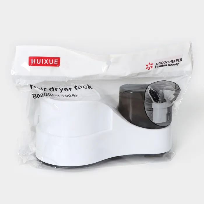 Держатель для фена и ванных принадлежностей в ванную на липучках, 18.7×10×9 см, чёрно-белый — Характеристики