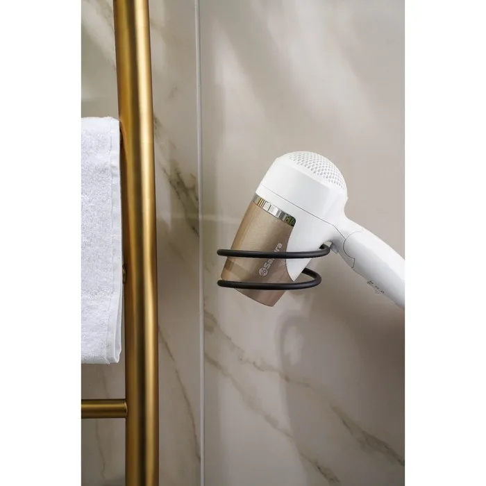Стильный лаконичный держатель для фена идеально впишется в любой интерьер. Помимо дизайна держатель имеет массу плюсов: практичность, надежность, функциональность и служит элементом декора. Высококачественное хромированное защитит изделие от ржавчины.