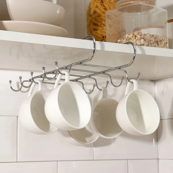 Держатель для кружек Доляна, на 10 предметов, подвесной, 27.5×18×6.5 см, хром — Характеристики