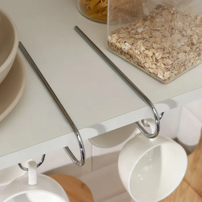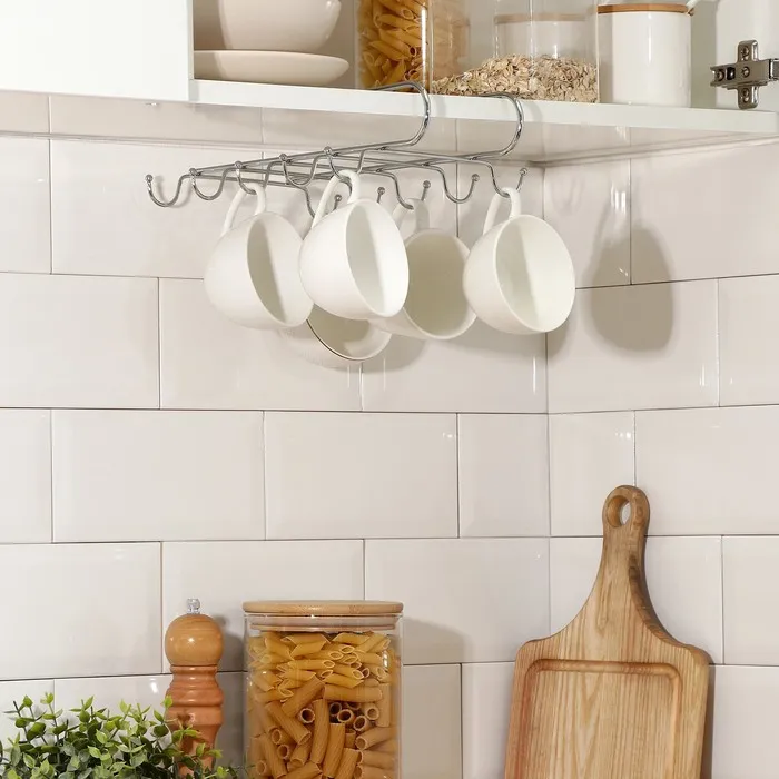 - Держатель можно использовать для хранения кружек, а также для полотенец, благодаря удобным крючкам.
