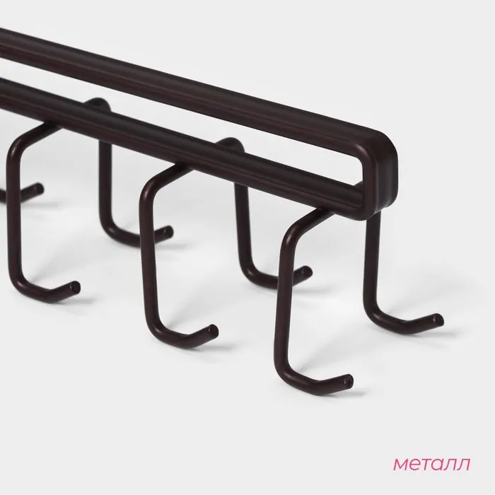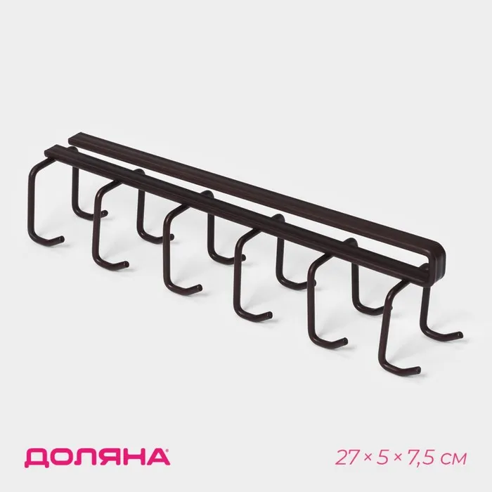 Держатель для кружек подвесной Доляна, на 12 предметов, 27×5×7.5 см, коричневый — Характеристики