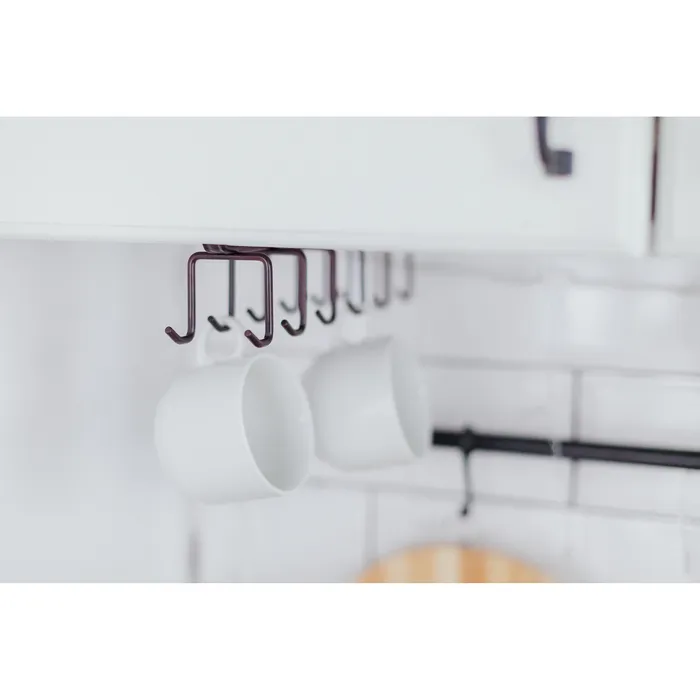 - Держатель можно использовать для хранения кружек, а также для полотенец, благодаря удобным крючкам.