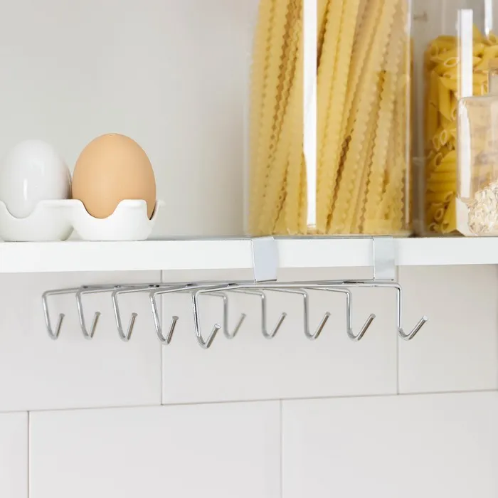 - Держатель можно использовать для хранения кружек, а также для полотенец, благодаря удобным крючкам.