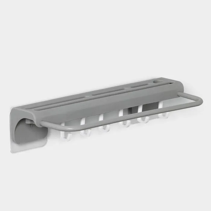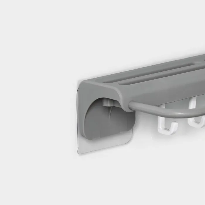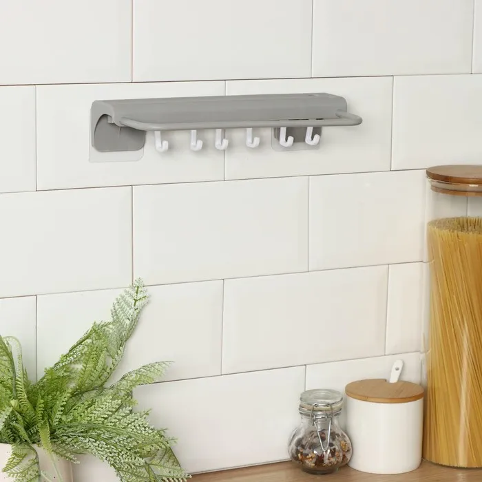 Он изготовлен из прочного пластика с использованием липучки для легкой установки на стене или другой гладкой поверхности.Крючки позволяют удобно разместить различные кухонные принадлежности, такие как половники, лопатки, шумовки и т. д.Кроме того, держатель для полотенец обеспечивает дополнительное пространство для хранения и сушки полотенец, губок и других предметов.Этот аксессуар поможет организовать рабочее пространство на кухне и поддерживать порядок.