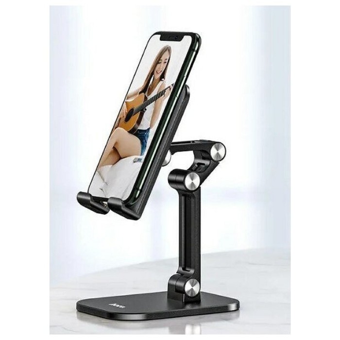 Держатель выполнен из прочных материалов, обеспечивая надежную и безопасную фиксацию устройства. Его можно установить на любой горизонтальной поверхности, благодаря чему он идеально подходит для просмотра видео, чтения, видеозвонков или работы с приложениями на большом экране. Черный цвет придает аксессуару стильный и минималистичный вид, который подходит для любого интерьера.