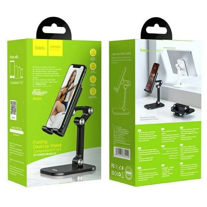 Держатель для мобильных устройств Hoco PH34 — это универсальный аксессуар, предназначенный для надежной фиксации ваших мобильных устройств на столе, рабочем месте или другом удобном месте. Он поддерживает устройства с диагональю экрана от 4.7 до 13 дюймов, что позволяет использовать его с широким спектром смартфонов и планшетов.