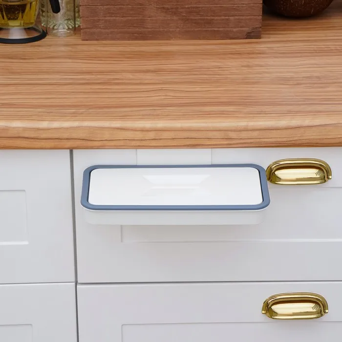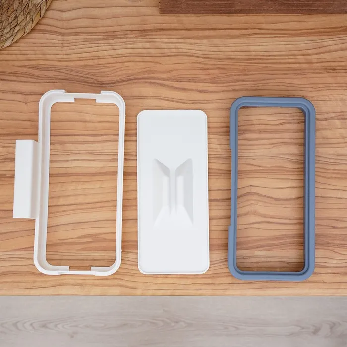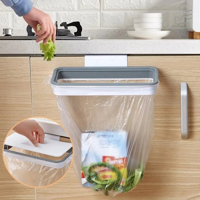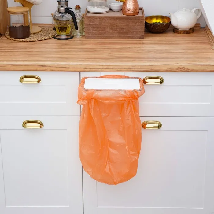 Держатель пакета — упрощённая версия подвесной корзины, которая легко крепится и плотно фиксируется на дверце. Состоит непосредственно из навесного держателя для пакета и крышки.