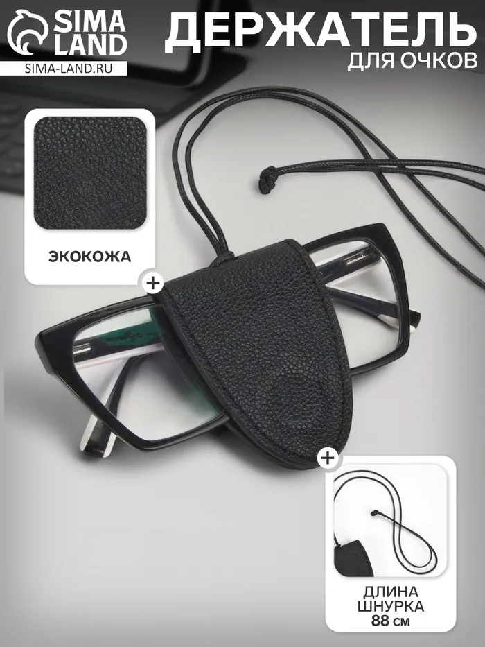 Держатель для очков на шею, шнурок 88 см, 4.5×7 см, чёрный — Характеристики