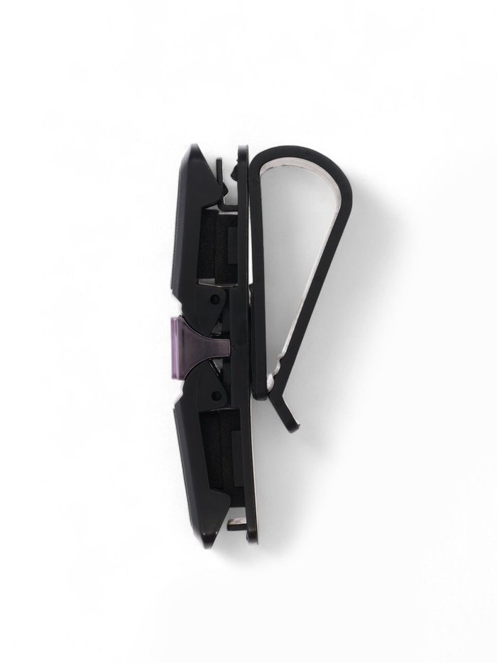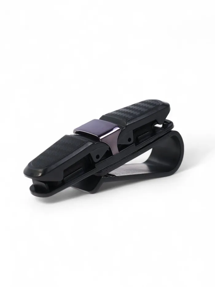 Держатель очков крепится на солнцезащитный козырек или за любую другую поверхность с помощью имеющейся клипсы. Для того чтобы очки плотно и надежно сидели в держателе, внутри него находится мелкозернистый поролон. В таком держателе ваши очки не будут царапать свои стекла или кататься по всей поверхности приборной панели. Наш держатель для очков обеспечит безопасное хранение ваших очков в салоне авто. Держатель имеет привлекательный дизайн и миниатюрный размер.