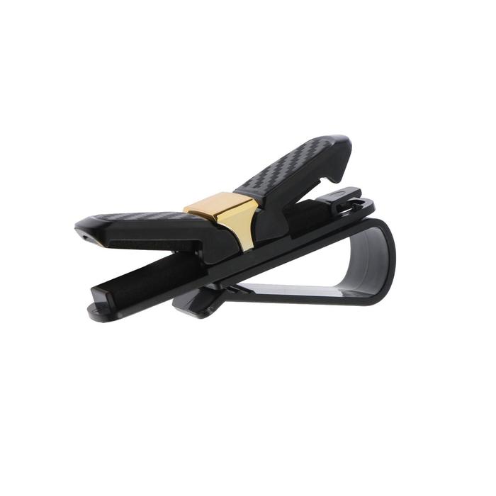 Держатель очков крепится на солнцезащитный козырек или за любую другую поверхность с помощью имеющейся клипсы. Для того чтобы очки плотно и надежно сидели в держателе, внутри него находится мелкозернистый поролон. В таком держателе ваши очки не будут царапать свои стекла или кататься по всей поверхности приборной панели. Наш держатель для очков обеспечит безопасное хранение ваших очков в салоне авто. Держатель имеет привлекательный дизайн и миниатюрный размер.