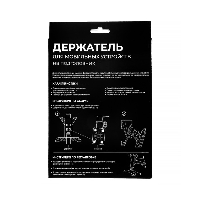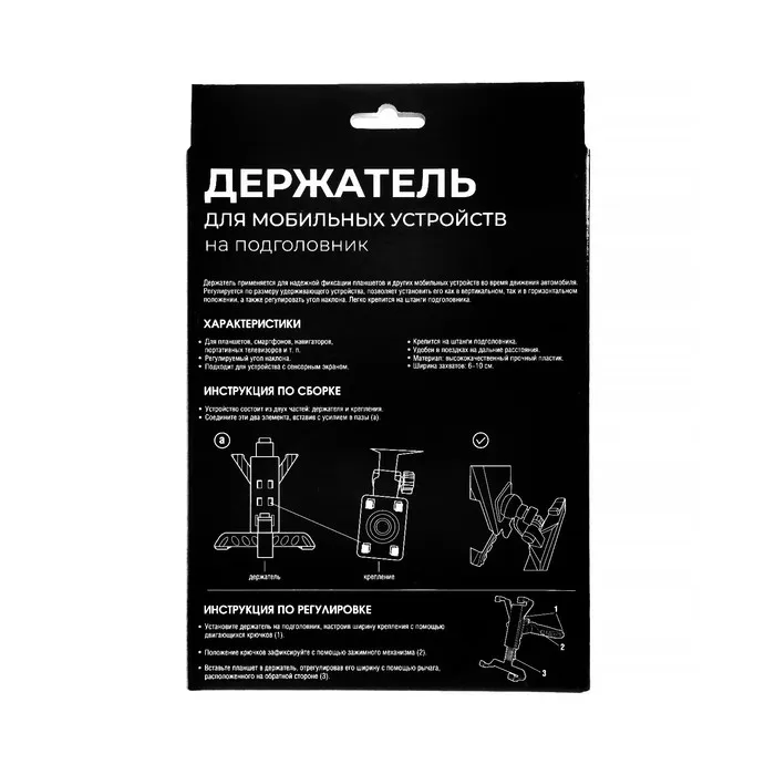 Держатель применяется для надежной фиксации планшетов и других мобильных устройств во время движения автомобиля. Регулируется по размеру удерживаемого устройства, позволяет установить его как в вертикальном так и в горизонтальном положении, а также регулировать угол наклона. Легко крепится на штанги любого автомобильного подголовника.