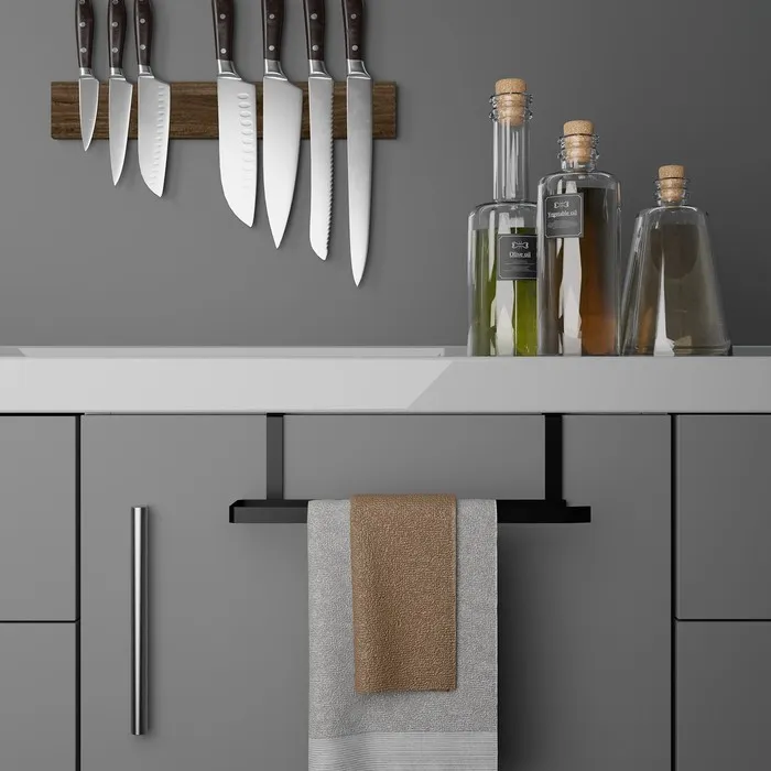 Удобный держатель предназначен для экономии места на кухне, а именно компактного хранения полотенец в одном месте.