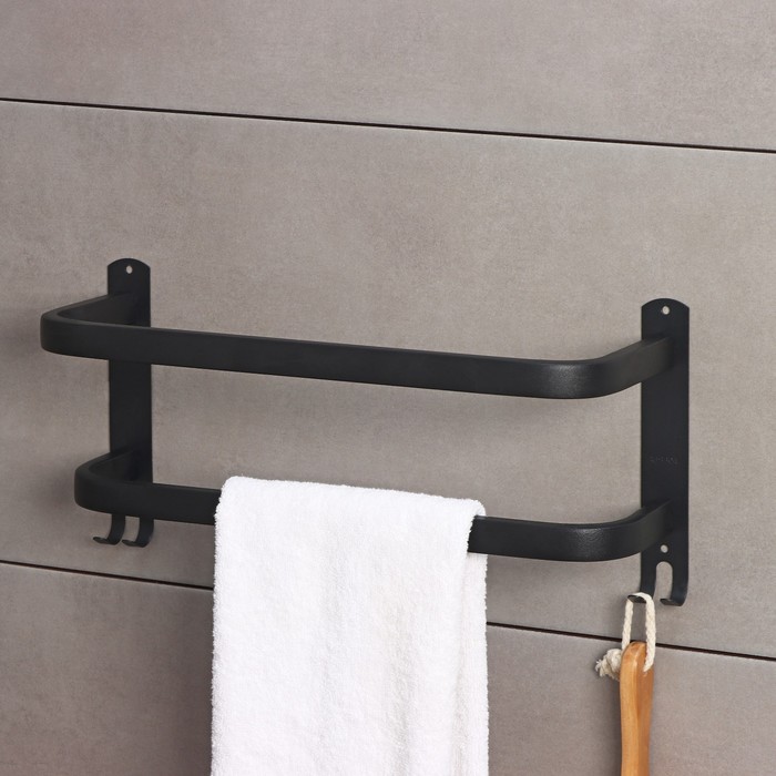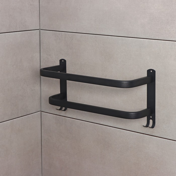 Держатель для полотенец двойной, 39.5 см, 2 крючка, нержавеющая сталь, чёрный — Характеристики