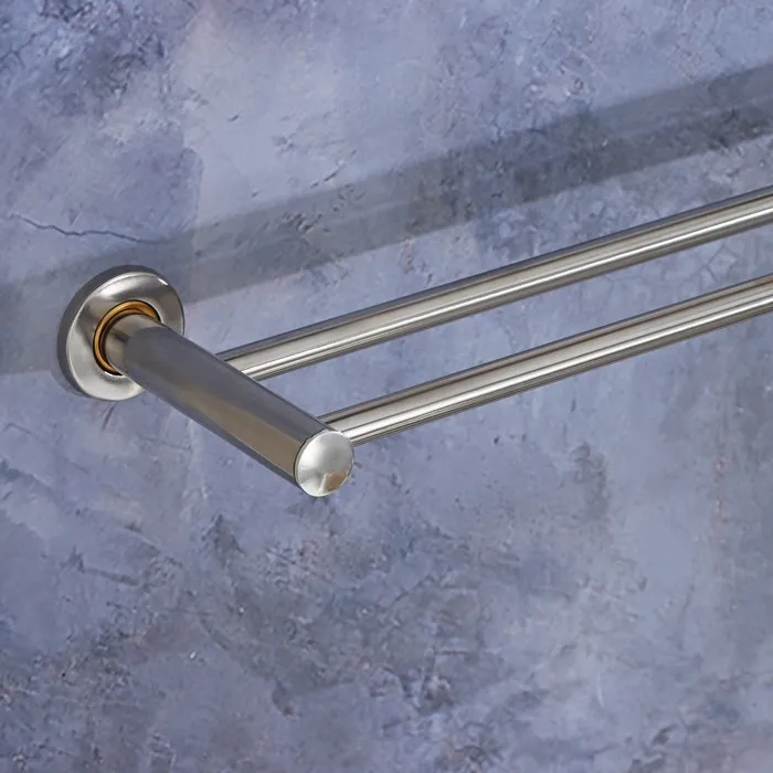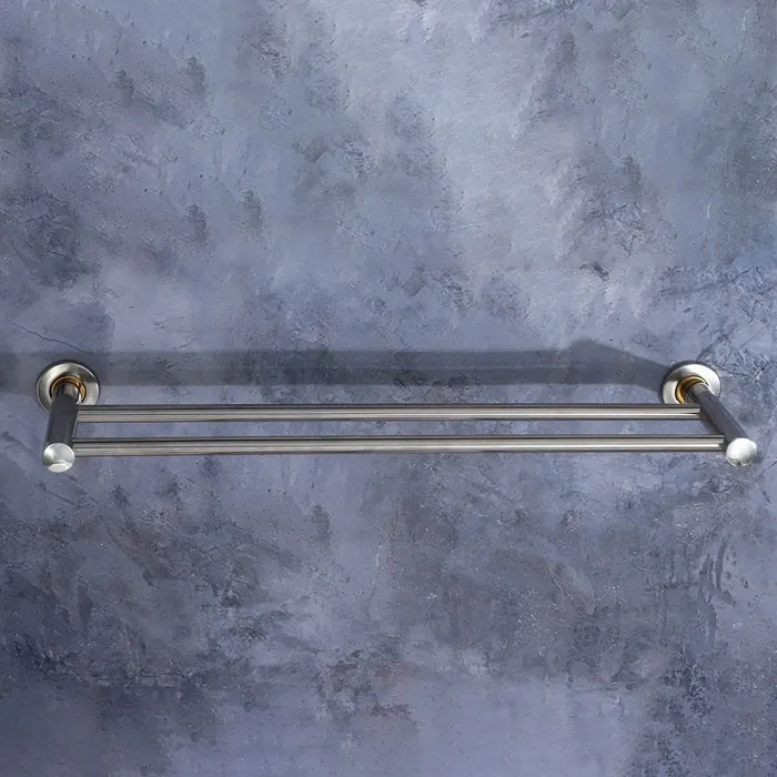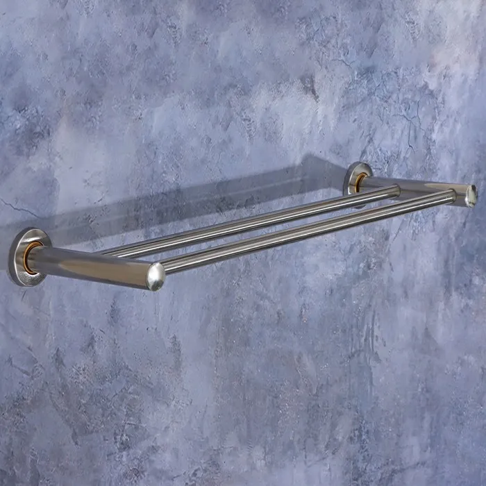 - Настенный полотенцедержатель выполнен в виде двух металлических штанг, поэтому выполняет свою функцию сушки лучше, чем крючки для полотенец.