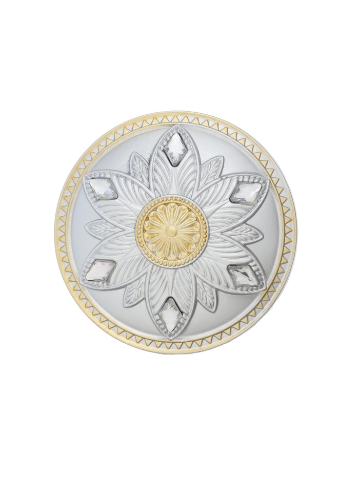 Держатели для штор KS032 серебристые с золотом, 2 шт. — решение для настенного крепления занавесок любого типа. Диаметр составляет 98 мм.