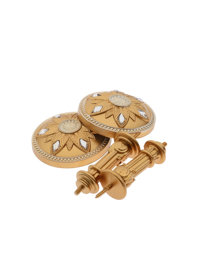 Держатели для штор KS032 золотые с серебром, 2 шт. — решение для настенного крепления занавесок любого типа. Диаметр составляет 98 мм.