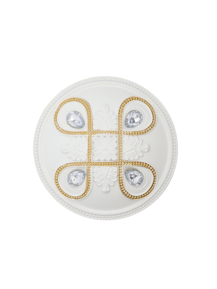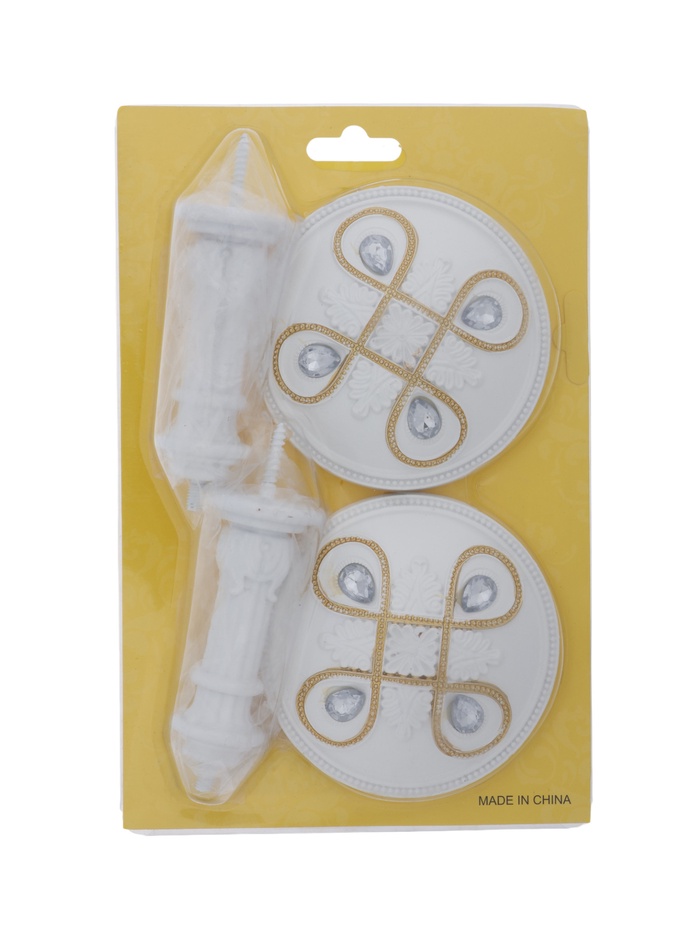 Держатели для штор KS033 белые с золотом, 2 шт. — решение для настенного крепления занавесок любого типа. Диаметр составляет 98 мм.