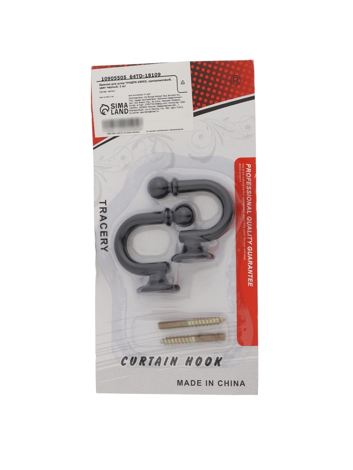 Держатель для штор «ТУНДРА» KS003, однорожковый, черный, 2 шт. — Характеристики