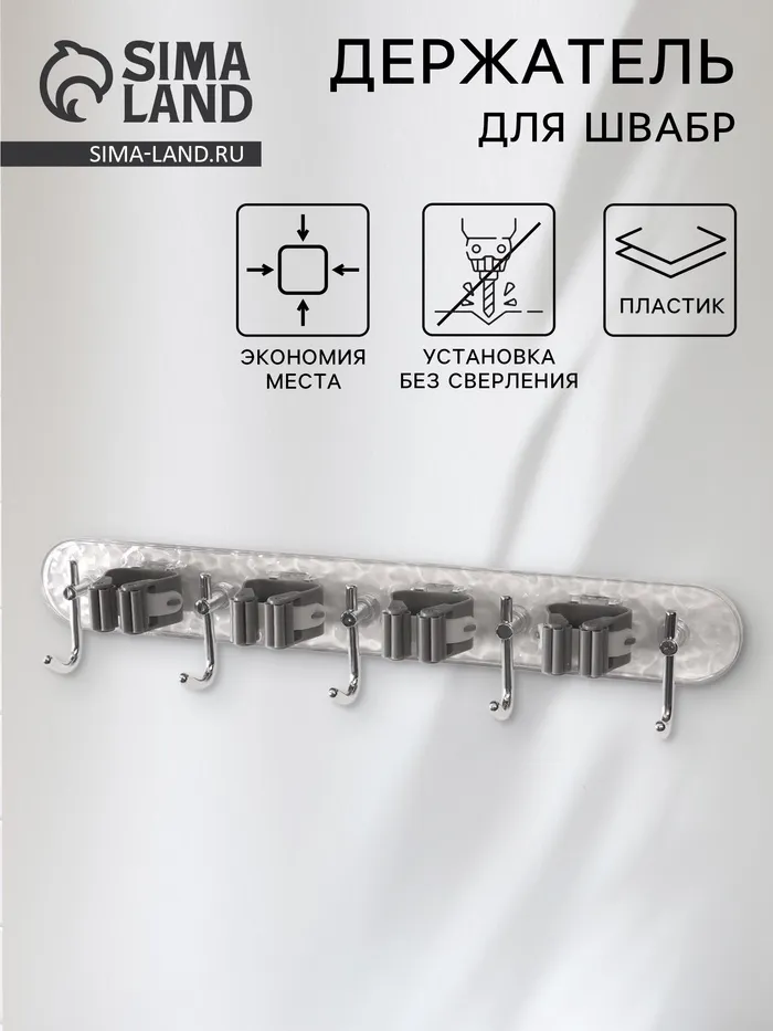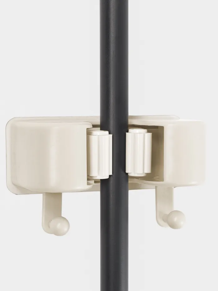 Удобный и практичный аксессуар, который поможет навести порядок в вашей ванной комнате, прихожей или туалете — держатель швабр, щёток и других бытовых изделий.