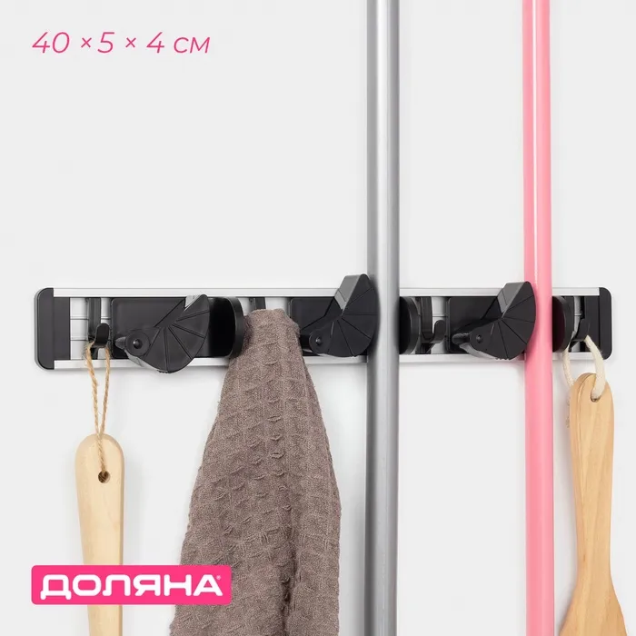 Настенный держатель — удобный и практичный аксессуар, который поможет навести порядок в вашей ванной комнате, прихожей или туалете — держатель швабр, щёток и других бытовых изделий. Поможет не допустить угнетающего беспорядка в вашем доме. Многофункциональный держатель подходит для швабр, полотенец, мочалок и других хозяйственных товаров.