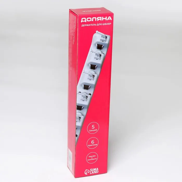 Держатель для швабр и метел с крючками Доляна, крепление саморезы, 41×8 см, 5 секций — Характеристики