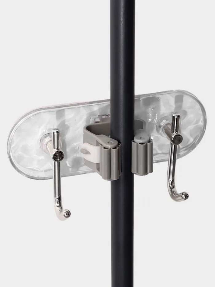 Держатель помогает организовать хранение швабр, чтобы они всегда были под рукой. Он подходит для использования в ванной, на кухне, в кладовой или гараже. Прозрачная основа делает его универсальным — он не выделяется на фоне стены и подходит для любого стиля интерьера.