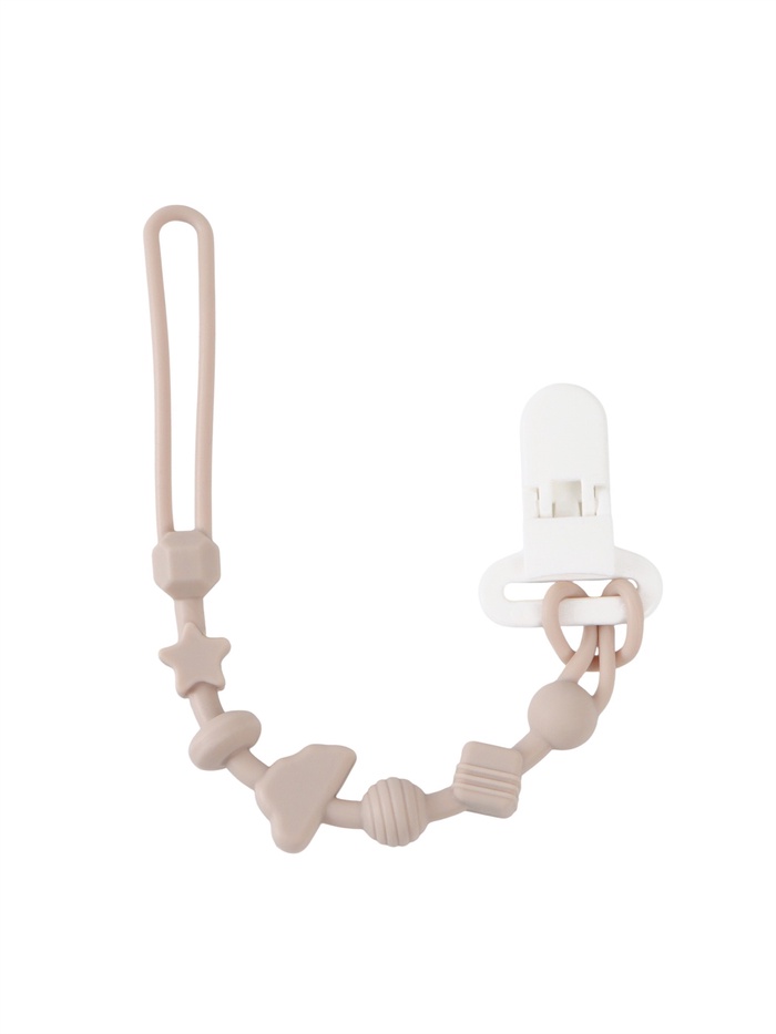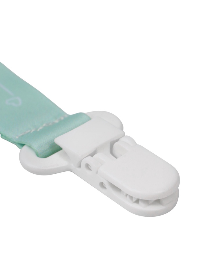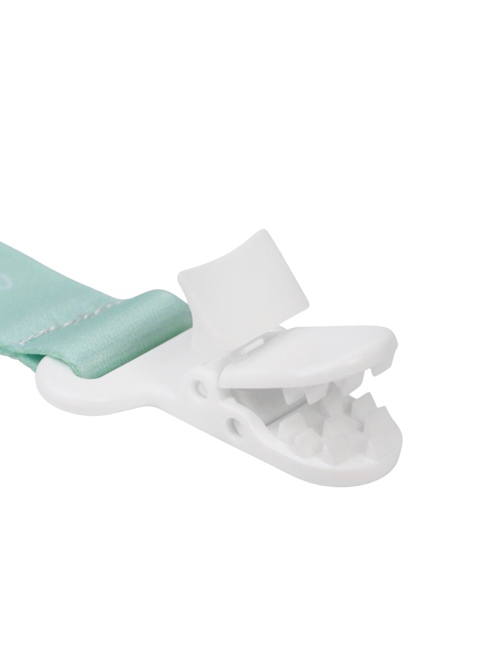 Изделие фиксируется на одежде ребёнка. На конце цепочки есть карабин, который зацепляется за кольцо пустышки. Надёжное крепление убережёт вещь от падения на пол, если малютка случайно выронит её изо рта.