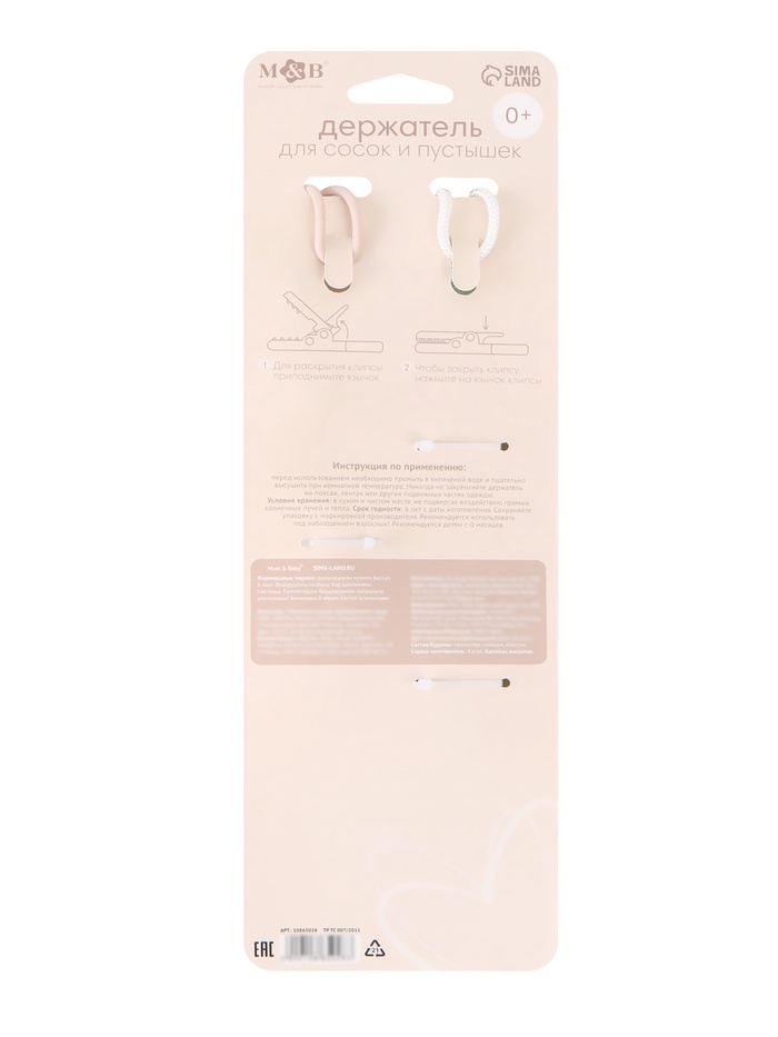 Держатель для соски - пустышки, 2 шт., текстиль и силикон, Mum&Baby — Характеристики