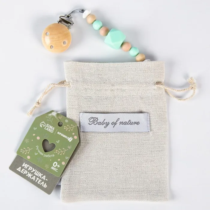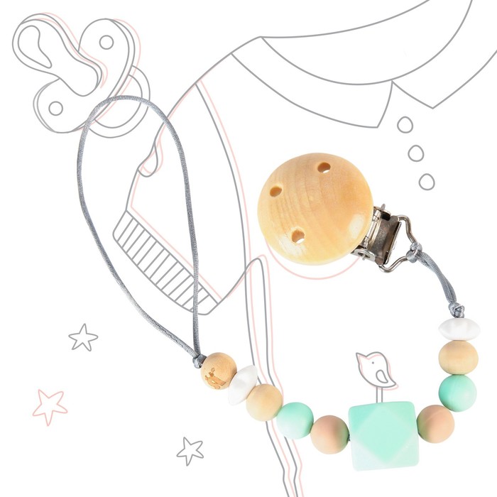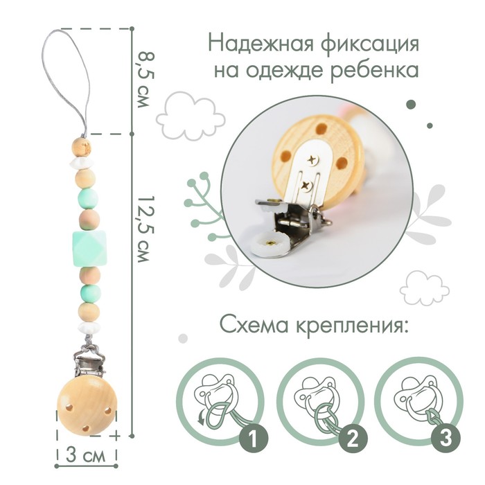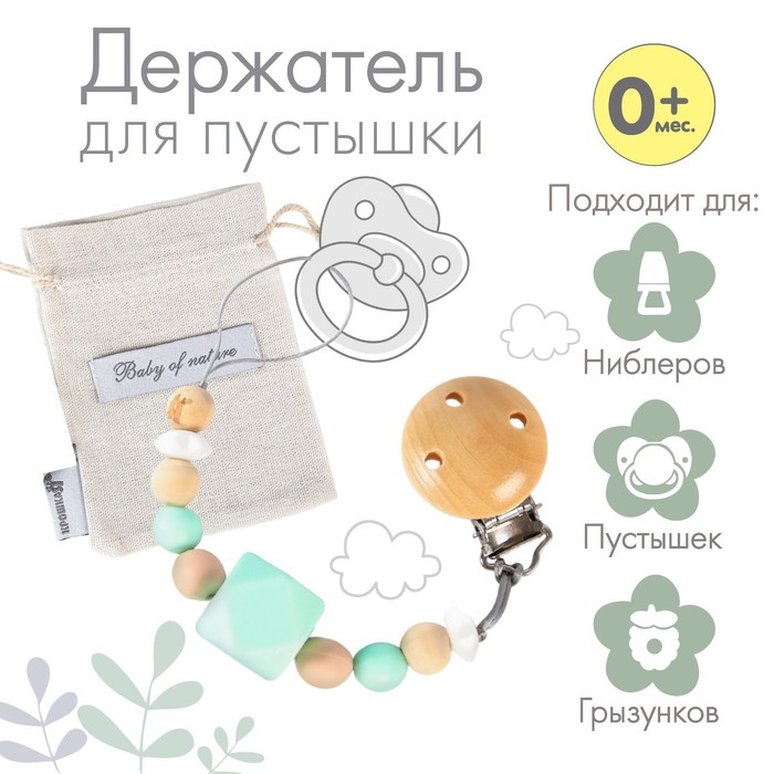 Держатель для соски - пустышки «Baby of nature», силиконовый, цвет бежевый/мятный — Характеристики