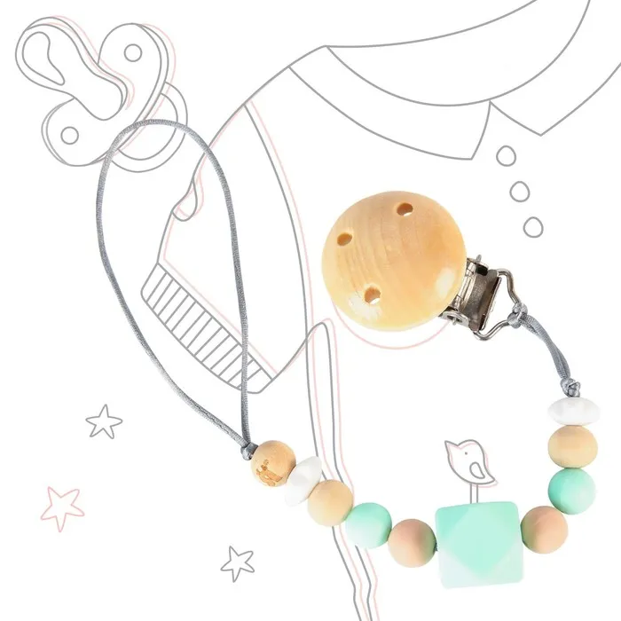 Держатель для соски - пустышки «Baby of nature», силиконовый, цвет бежевый/мятный