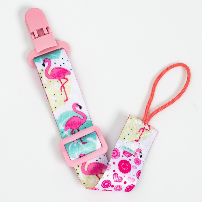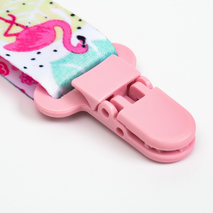Изделие фиксируется на одежде ребёнка. На конце цепочки есть карабин, который зацепляется за кольцо пустышки. Надёжное крепление убережёт вещь от падения на пол, если малютка случайно выронит её изо рта.