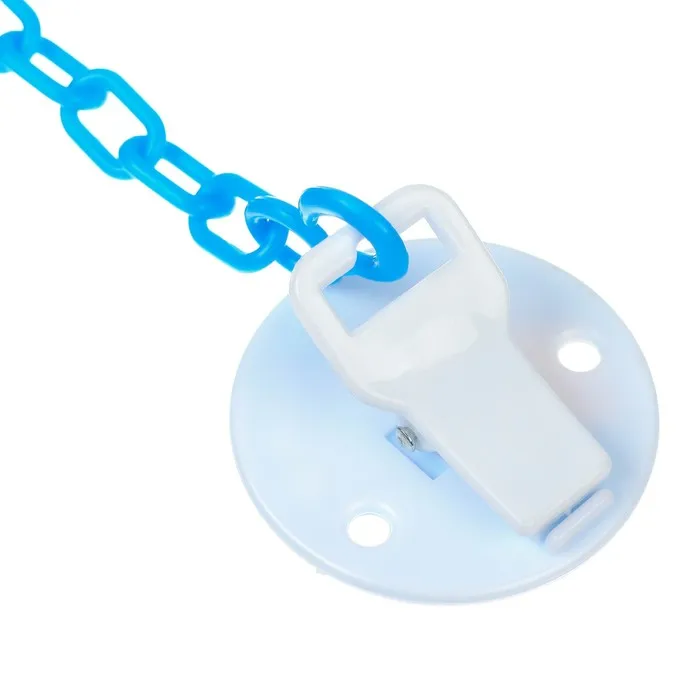 Изделие фиксируется на одежде ребёнка. На конце цепочки есть карабин, который зацепляется за кольцо пустышки. Надёжное крепление убережёт вещь от падения на пол, если малютка случайно выронит её изо рта.