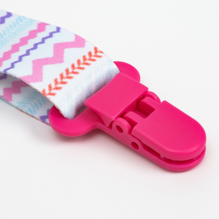 Изделие фиксируется на одежде ребёнка. На конце цепочки есть карабин, который зацепляется за кольцо пустышки. Надёжное крепление убережёт вещь от падения на пол, если малютка случайно выронит её изо рта.