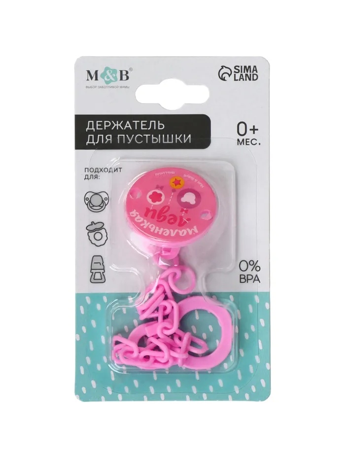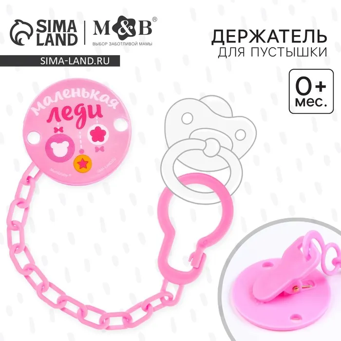 Держатель для соски - пустышки, «Маленькая леди», на цепочке, розовый — Характеристики