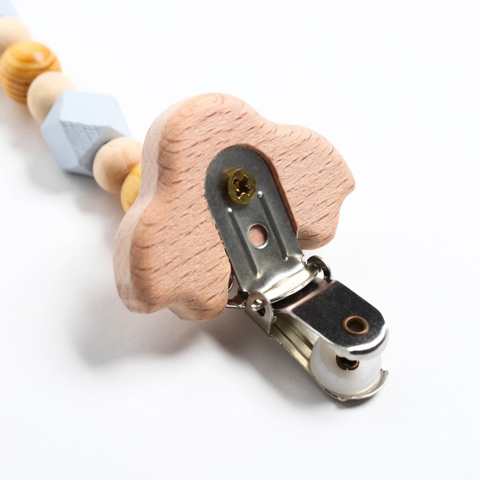 Изделие фиксируется на одежде ребёнка. На конце цепочки есть карабин, который зацепляется за кольцо пустышки. Надёжное крепление убережёт вещь от падения на пол, если малютка случайно выронит её изо рта.
