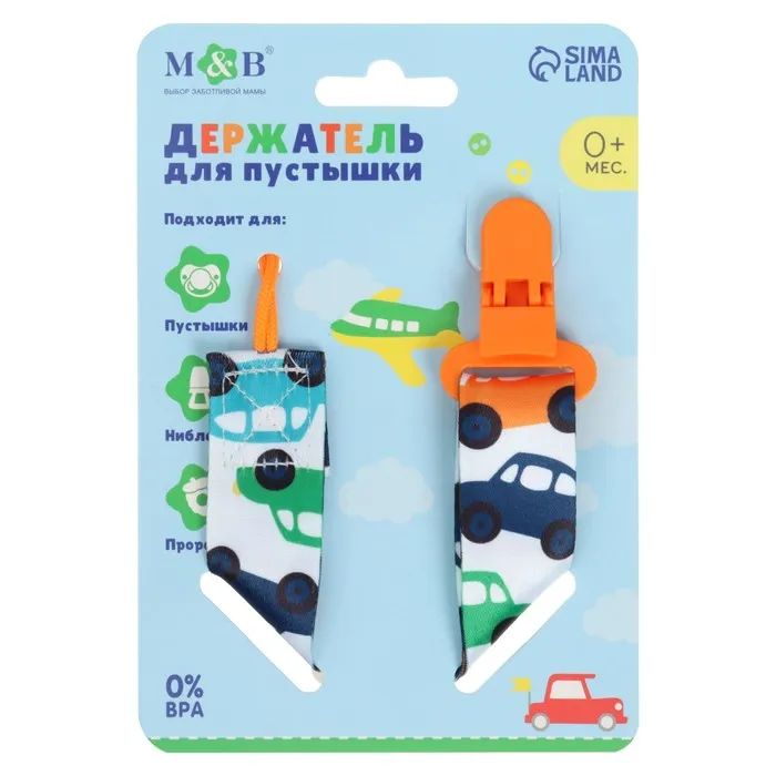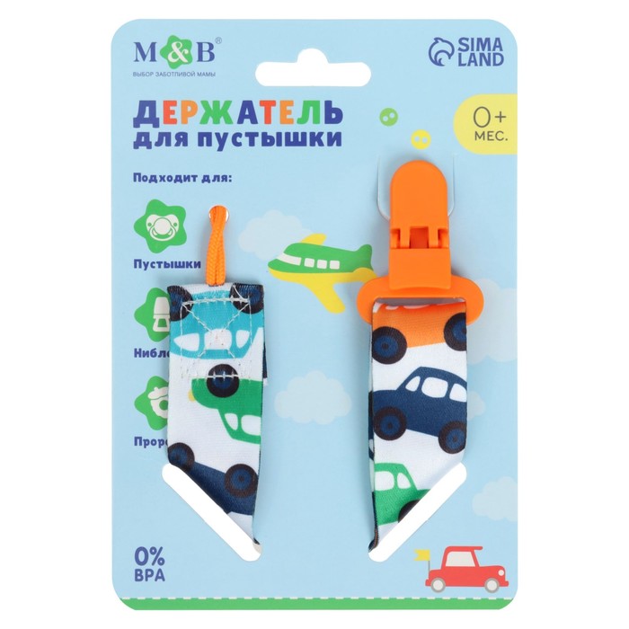 Держатель для соски - пустышки M&B «Машинки», на ленте — Характеристики