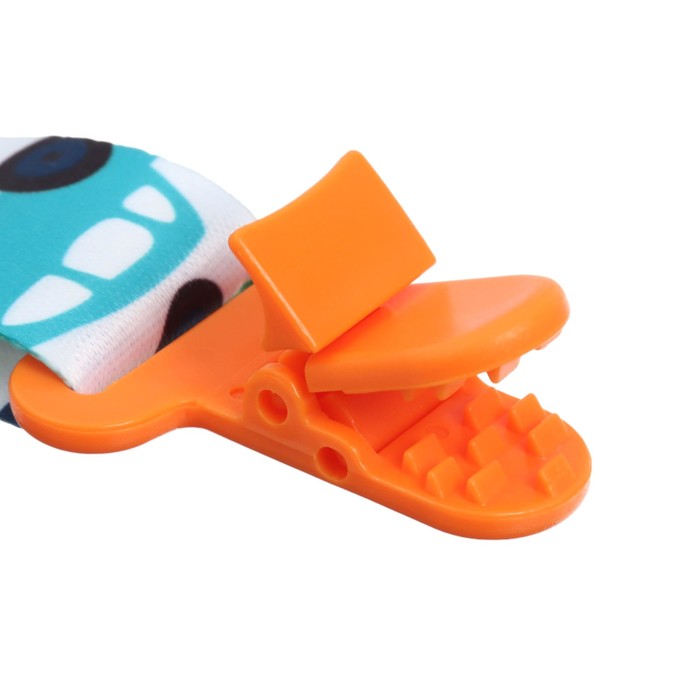 Изделие фиксируется на одежде ребёнка. На конце цепочки есть карабин, который зацепляется за кольцо пустышки. Надёжное крепление убережёт вещь от падения на пол, если малютка случайно выронит её изо рта.