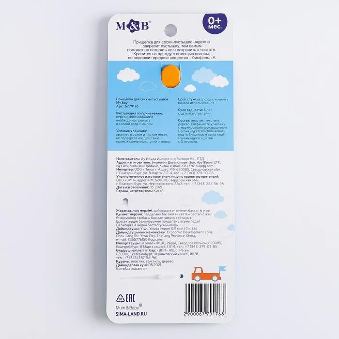 Держатель для соски - пустышки M&B «My boy» — Характеристики
