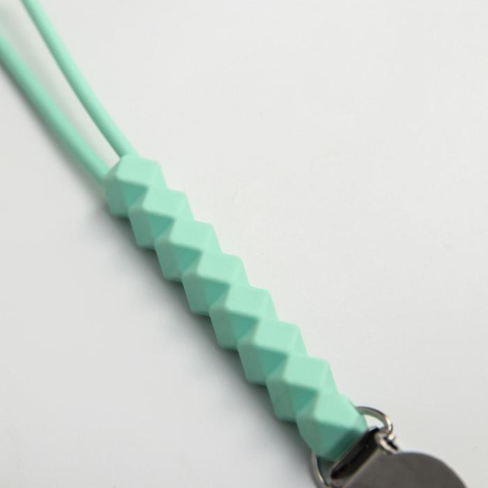Изделие фиксируется на одежде ребёнка. На конце цепочки есть карабин, который зацепляется за кольцо пустышки. Надёжное крепление убережёт вещь от падения на пол, если малютка случайно выронит её изо рта.