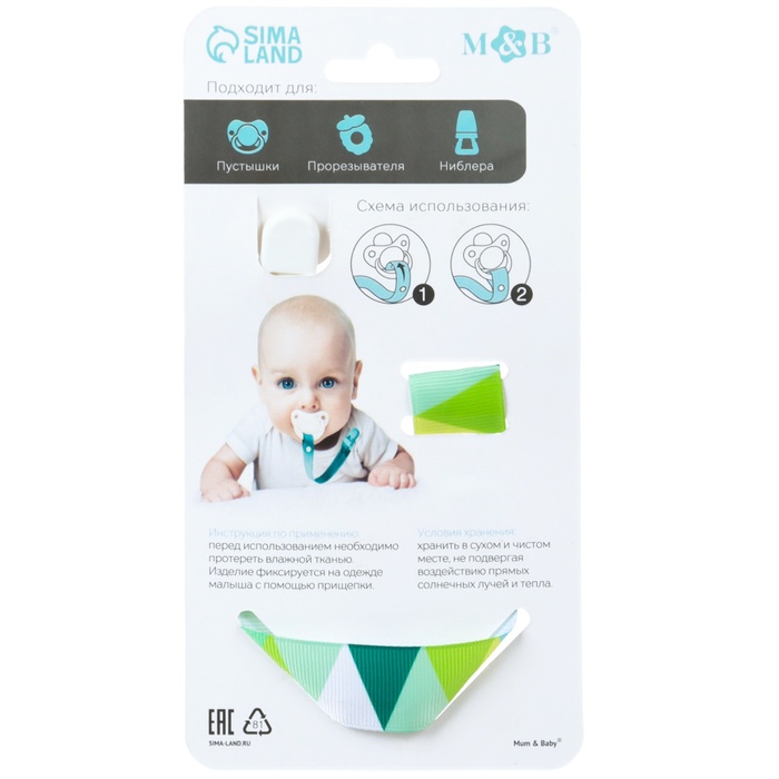 Держатель для соски - пустышки M&B «Счастливый ребёнок», на ленте — Характеристики