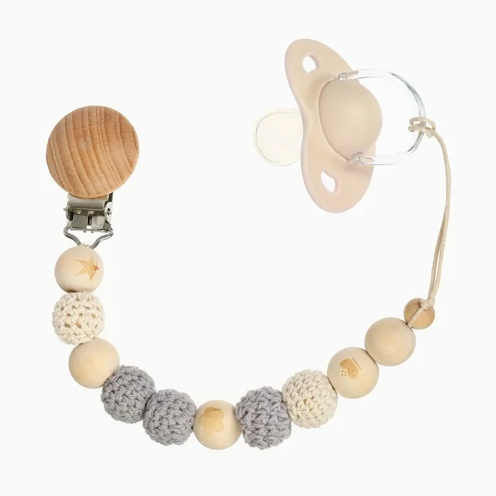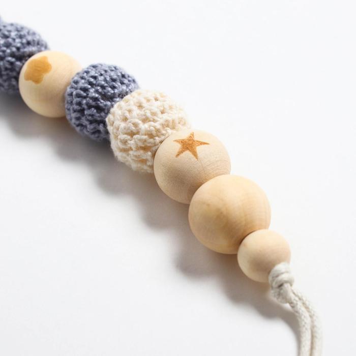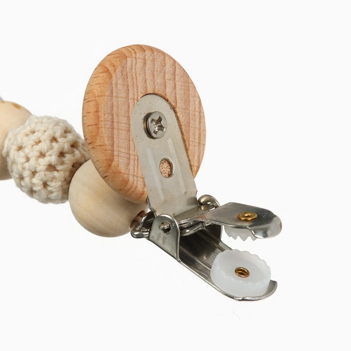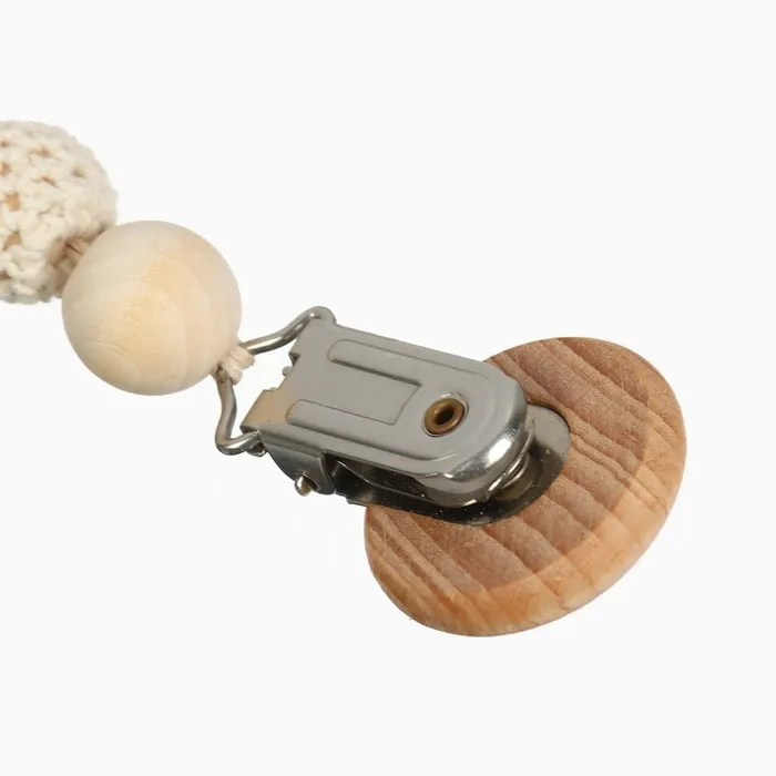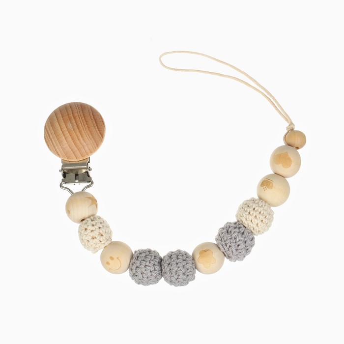 Изделие фиксируется на одежде ребёнка. На конце цепочки есть карабин, который зацепляется за кольцо пустышки. Надёжное крепление убережёт вещь от падения на пол, если малютка случайно выронит её изо рта.