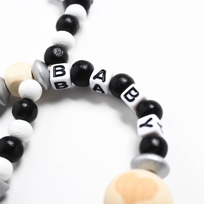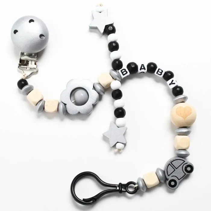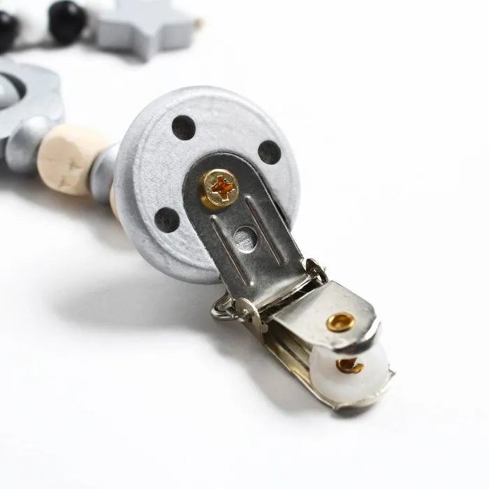 Держатель для соски - пустышки M&B «Звездочки», деревянный, серый — Характеристики