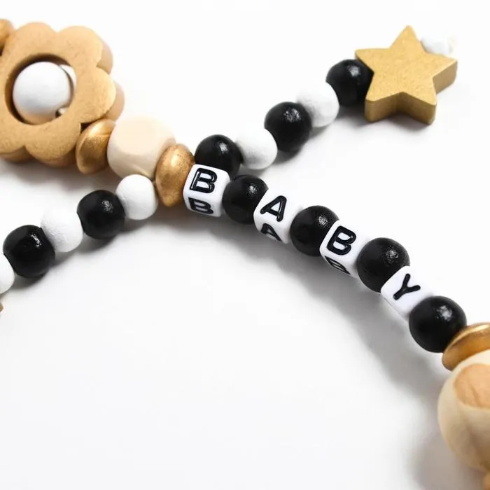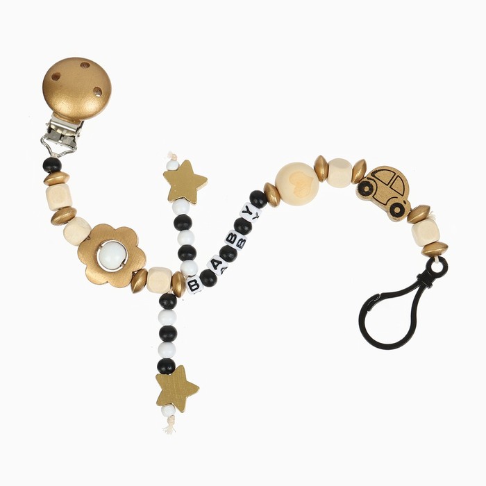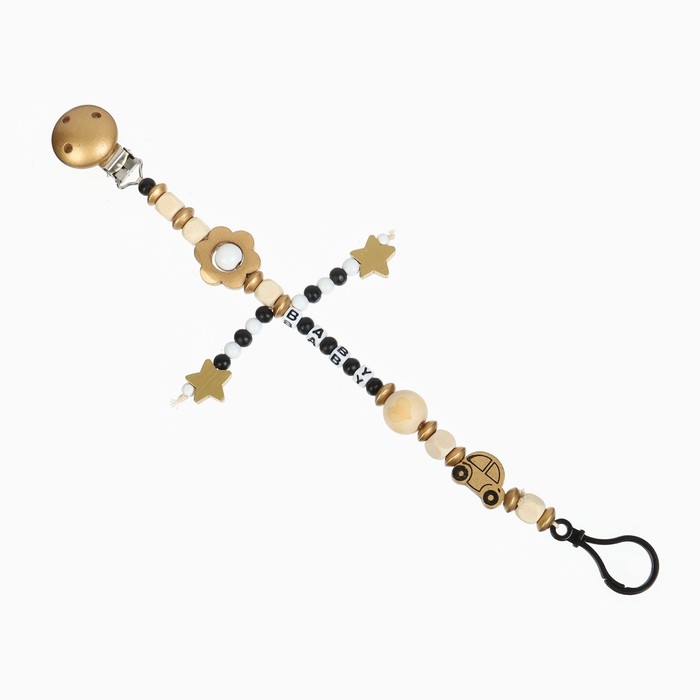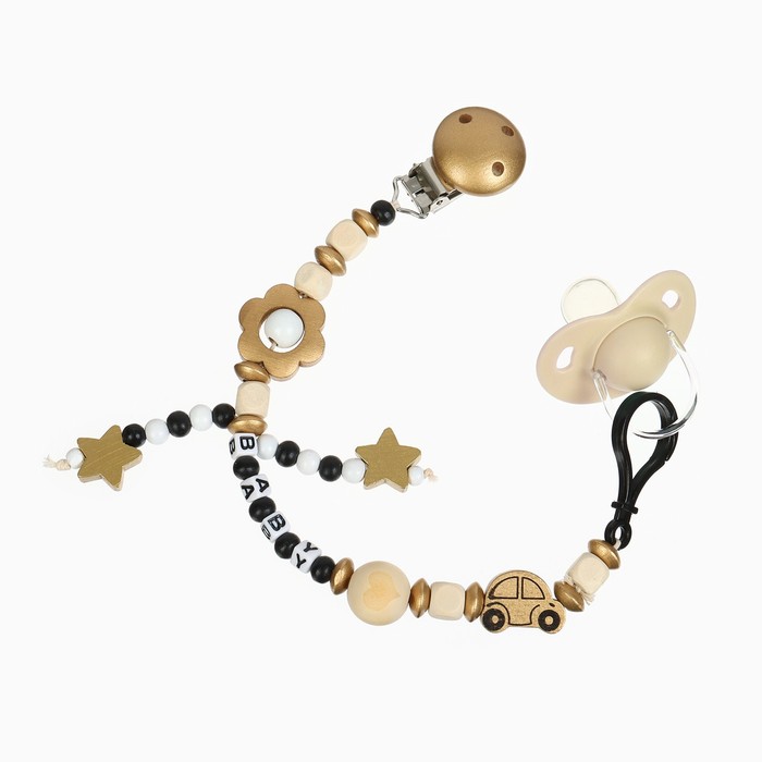 Держатель для соски - пустышки M&B «Звездочки», деревянный, золотой — Характеристики