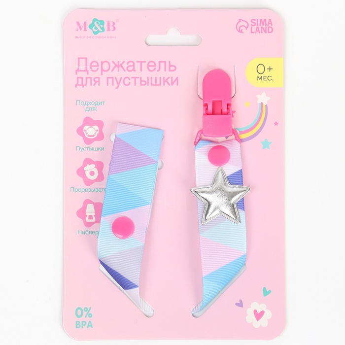 Держатель для соски - пустышки M&B «Звёздочка», на ленте — Характеристики