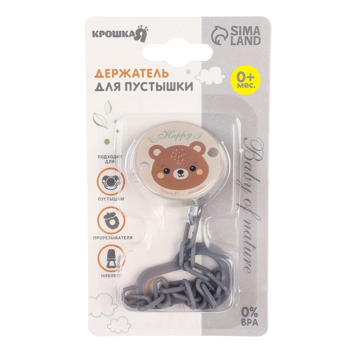 Держатель для соски - пустышки «Мишка», на цепочке — Характеристики