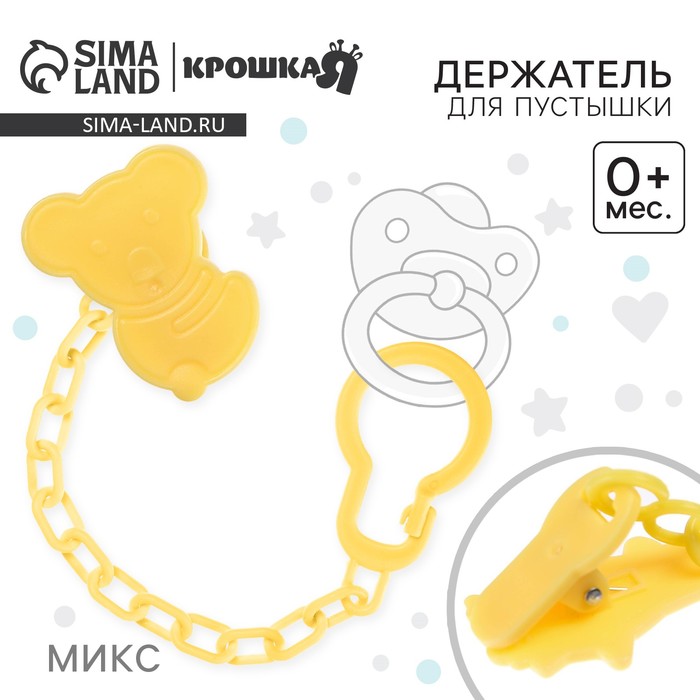 Держатель для соски - пустышки, на цепочке, цвет МИКС — Характеристики