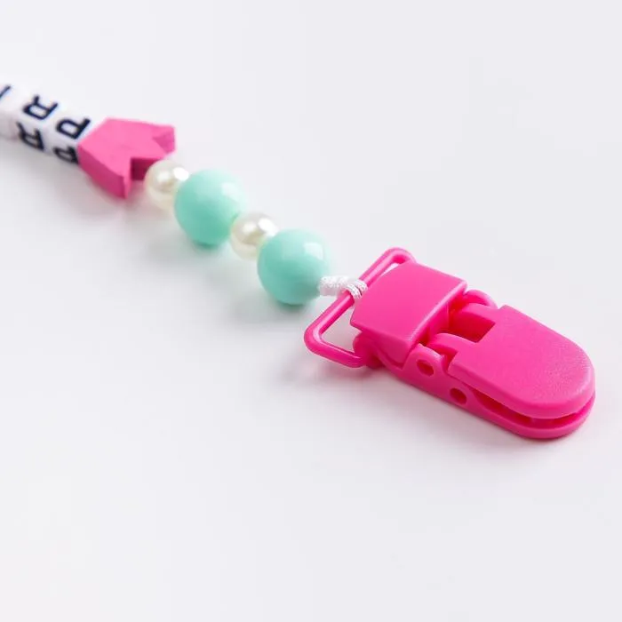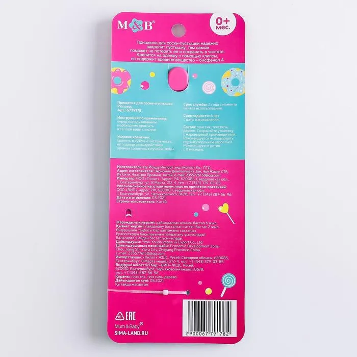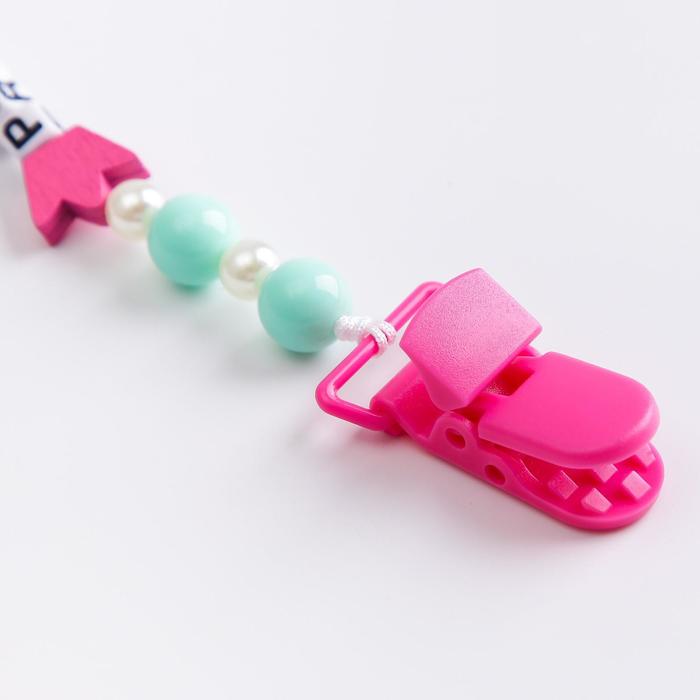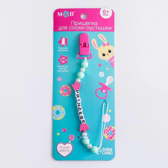 Изделие фиксируется на одежде ребёнка. На конце цепочки есть карабин, который зацепляется за кольцо пустышки. Надёжное крепление убережёт вещь от падения на пол, если малютка случайно выронит её изо рта.