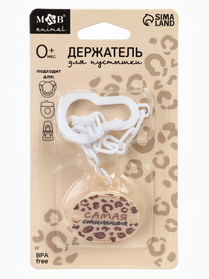 Держатель для соски - пустышки «Самая стильная», на цепочке, цвет бежевый — Характеристики