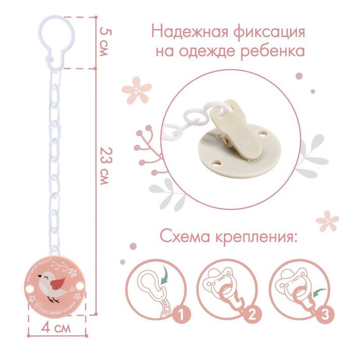 Держатель для соски - пустышки «Счастье есть», на цепочке — Характеристики
