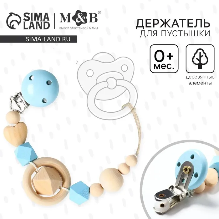 Изделие фиксируется на одежде ребёнка. На конце цепочки есть карабин, который зацепляется за кольцо пустышки. Надёжное крепление убережёт вещь от падения на пол, если малютка случайно выронит её изо рта.